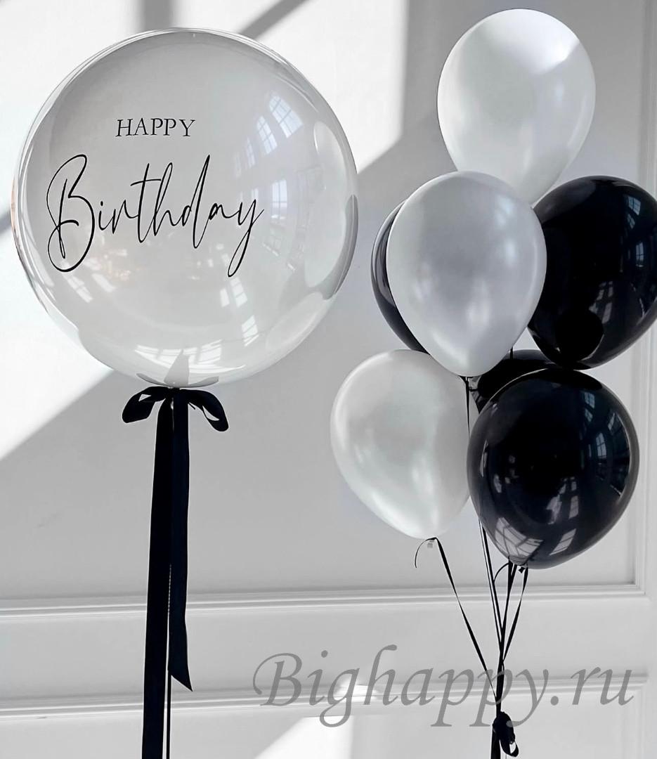 Стильное решение для тех, кто ценит лаконичность и визуальный баланс. Контрастная чёрно-белая палитра выглядит элегантно и универсально, а крупный белый шар дабл стафф с индивидуальной надписью и чёрной лентой становится главным акцентом композиции. Контрастный фонтан усиливает эффект и делает композицию цельной создавая гармоничный образ. Подходит для поздравлений, оформления пространства и атмосферных фотоснимков.