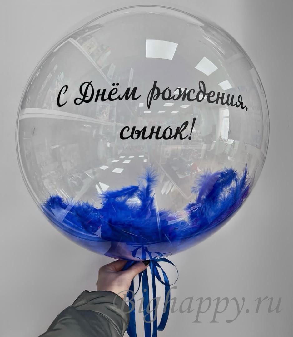 Прозрачный Bubbles с воздушными перьями внутри создаёт эффект лёгкости и утончённости. Цвет наполнения можно выбрать под тематику праздника или настроение события. Индивидуальная надпись превращает композицию в персональный сюрприз для дня рождения, выписки, свадьбы или романтического повода. Стильный акцент для фотозоны и трогательный подарок, который запомнится надолго.