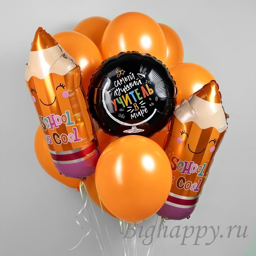 Фольгированные карандаши делают композицию узнаваемой и тематичной, а шар с надписью превращает её в прямое послание: «Вы — особенный педагог!»