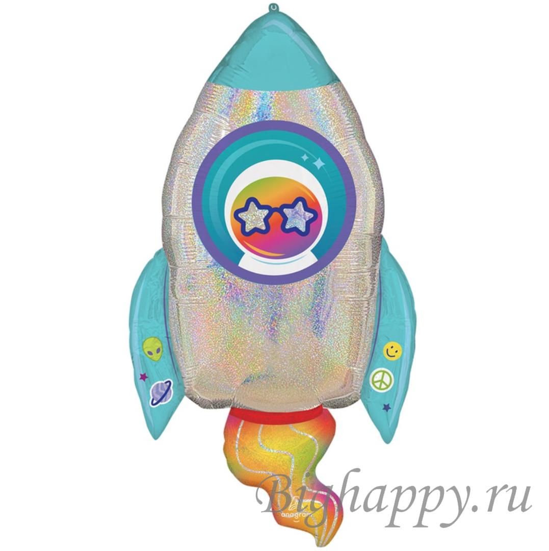 В форме яркой космической ракеты. Сочетание насыщенных цветов, блестящих металлизированных поверхностей и детализированного дизайна создаёт ощущение настоящего межзвёздного путешествия. Оригинальная форма, объёмные элементы и переливающиеся оттенки делают шар особенно заметным и праздничным.