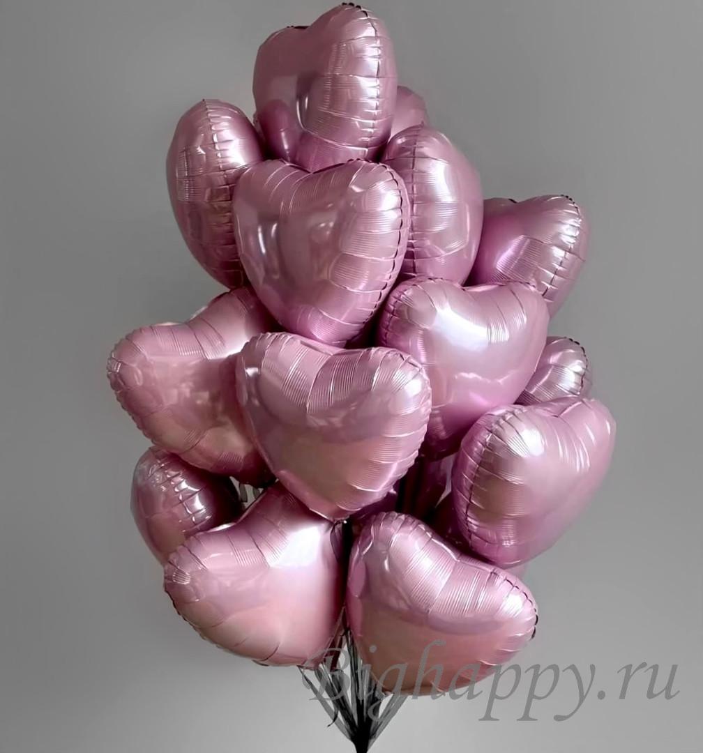 Букет из 15 фольгированных розовых шариков-сердечек