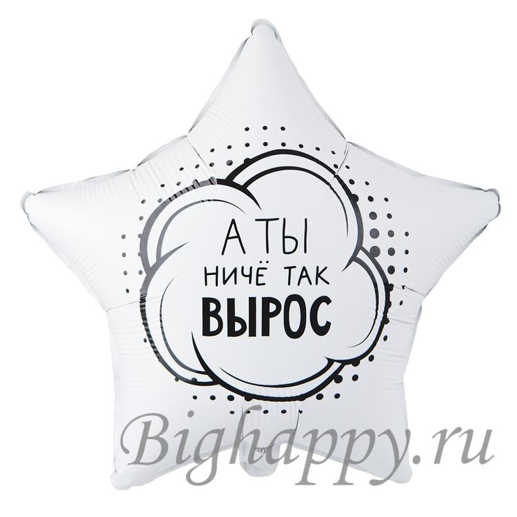 В центре размещён текстовый принт с надписью «А ты ничё так вырос», выполненный чёрным шрифтом. Надпись оформлена в стилистике комикса внутри графического облака с декоративным точечным узором.