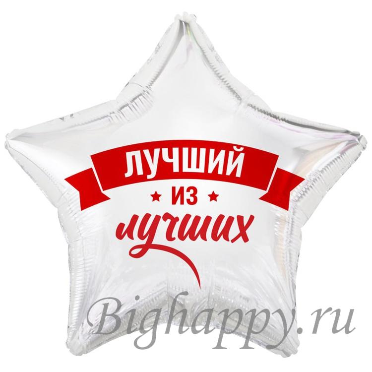 На лицевой стороне расположен текстовый принт «Лучший из лучших», выполненный красным цветом. Надпись оформлена в виде декоративной ленты с двумя звёздами и элементами каллиграфического шрифта.