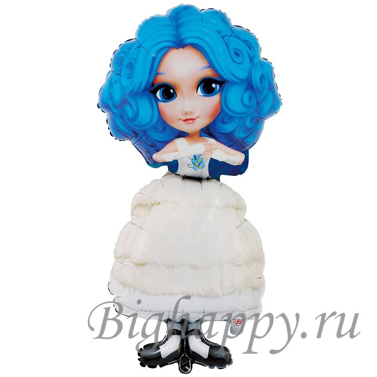 Пышное белое платье делает образ особенно праздничным — словно Мальвина оказалась на балу или в сказочном сне. Такой шар выглядит нарядно и дорого, легко становится центральным акцентом композиции и отлично смотрится как в одиночном формате, так и в связке с латексными шарами.