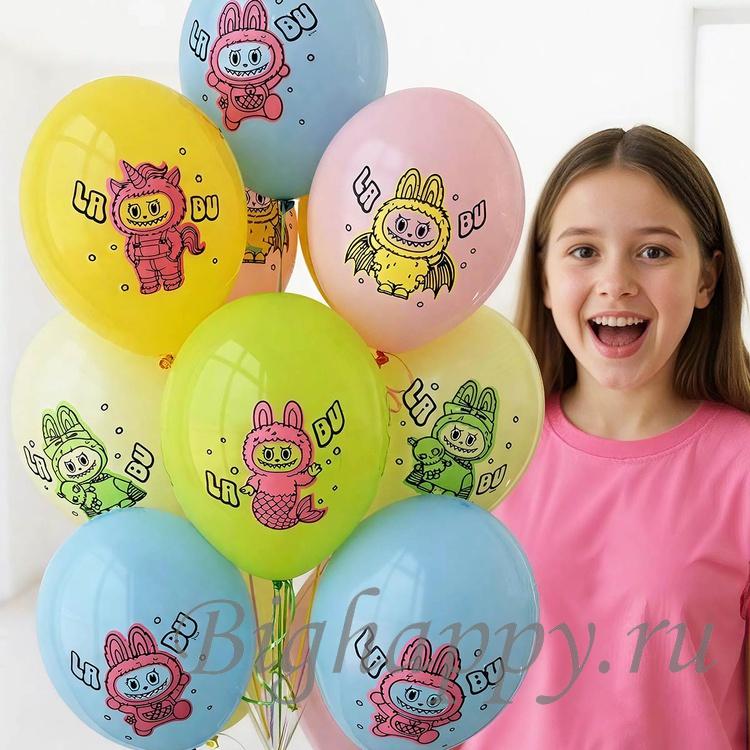 На каждом шарике — один из персонажей из легендарной вселенной The Monsters: с характерными ушками, гримасой и «зубастым» улыбом. Стиль креативных игрушек и милых существ.