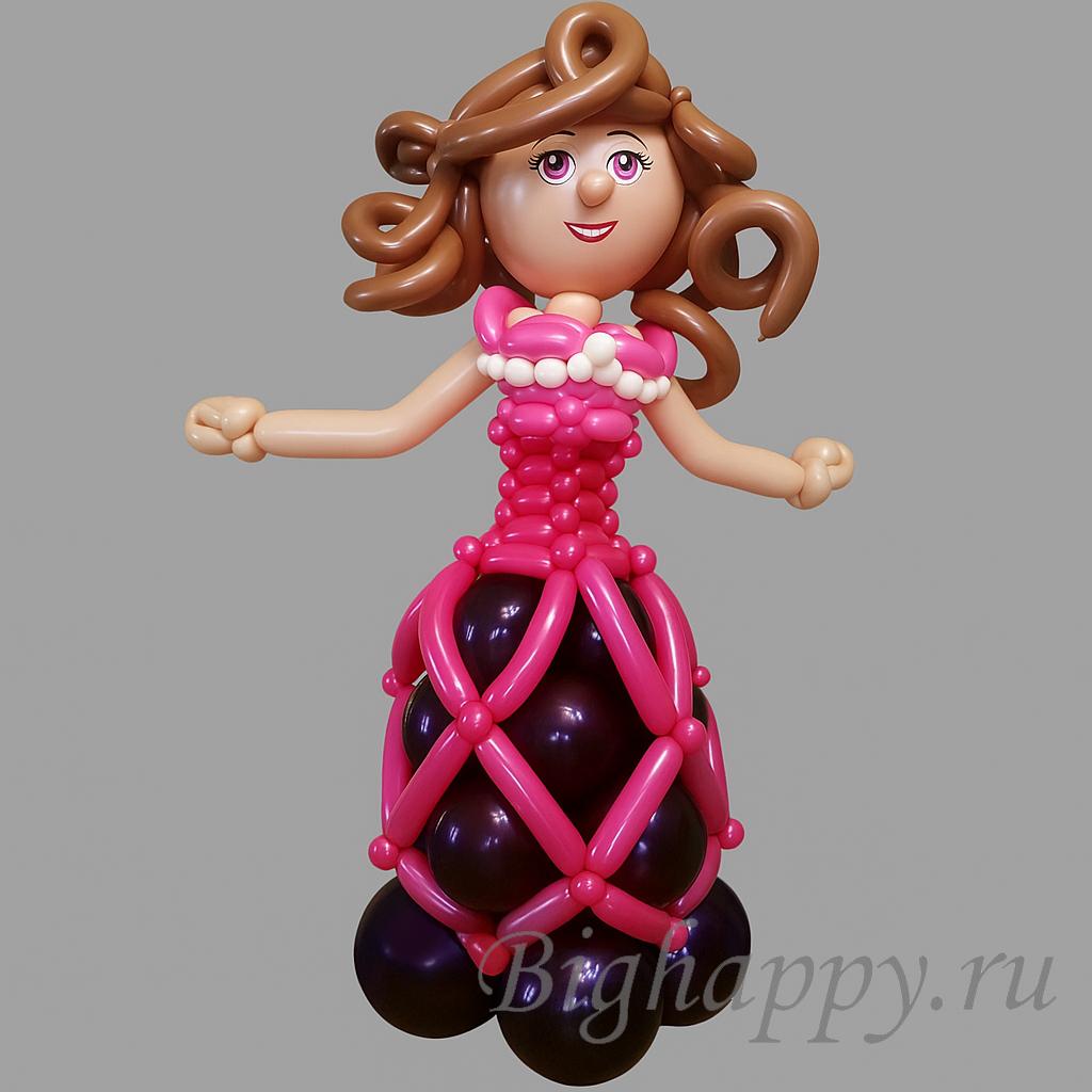 Фигура девушки из воздушных шаров напоминает принцессу из сказок. Она имеет: