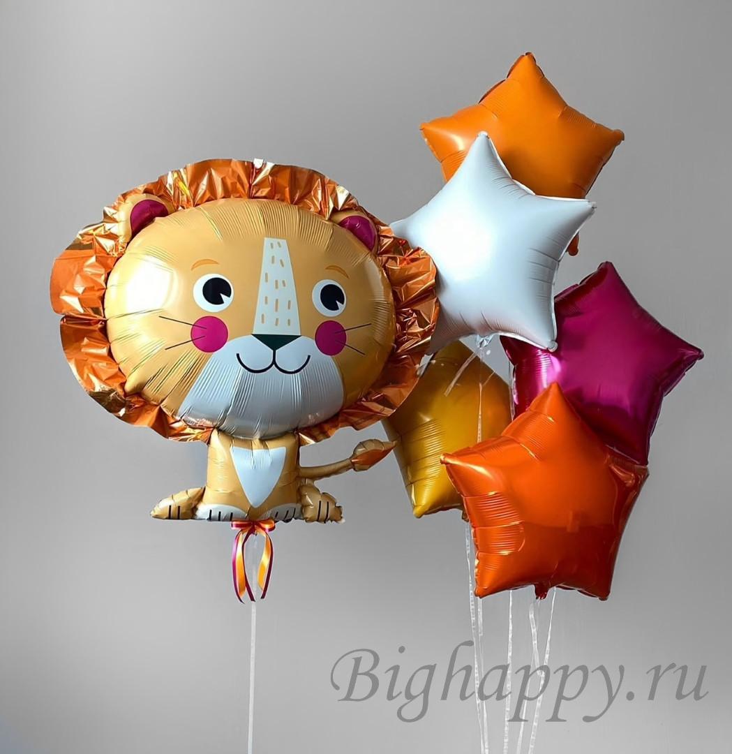 Яркие воздушные шары с гелием «Львёнок на празднике»
