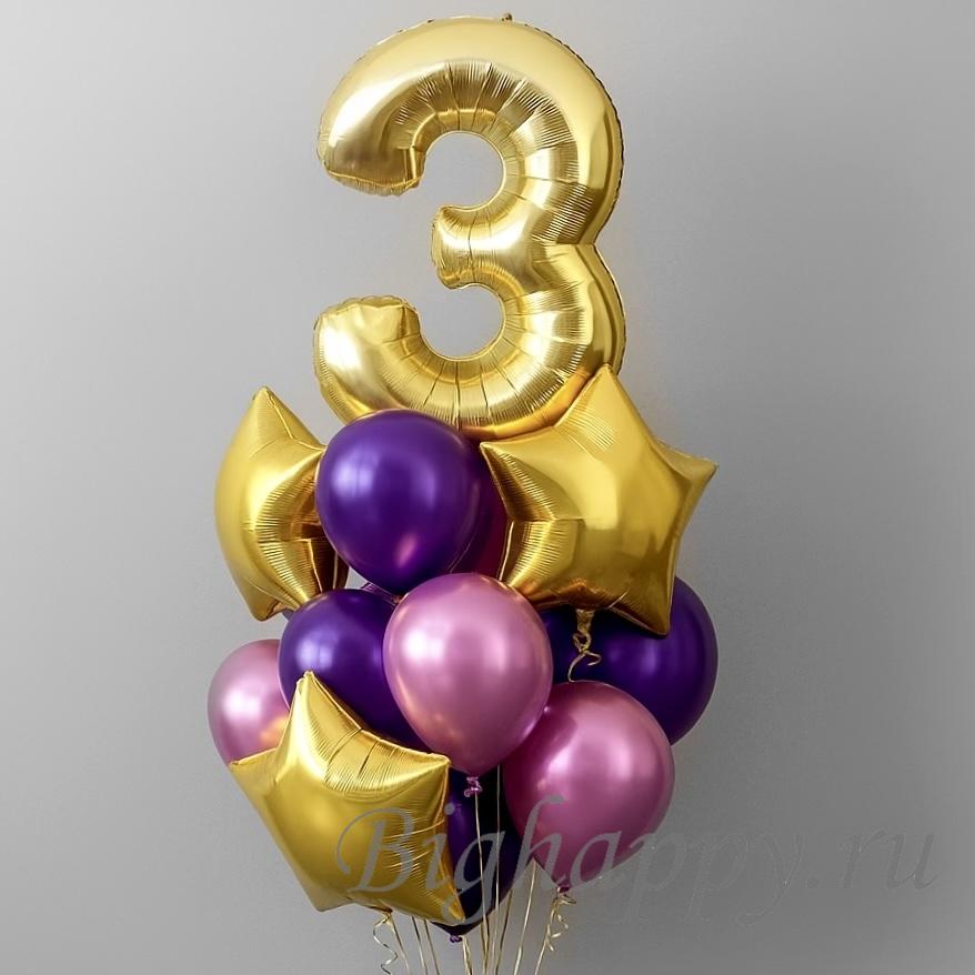 Большая воздушная композиция из шариков в модных цветах - это отличный вариант по украшению праздника на трехлетие вашего малыша! Яркие и блестящие шарики точно понравятся маленьким гостям и их родителям, все будут в полном восторге!