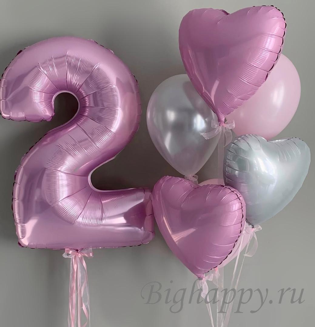 Очаровательная композиция для маленькой именинницы! Нежные розовые и серебристые тона, фольгированная цифра и легкий фонтан из сердец и латексных шаров создают атмосферу сказочного праздника. Идеально для украшения детского дня рождения и трогательных фото, наполненных радостью, нежностью и волшебством.