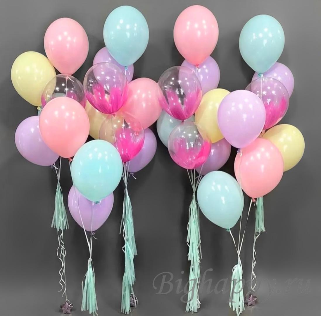 Окунитесь в атмосферу лёгкости и красоты! Нежные пастельные оттенки розового, голубого, сиреневого и жёлтого в сочетании с прозрачными шарами-браш и яркими кисточками и гирляндами Тассел создают изысканную композицию.
