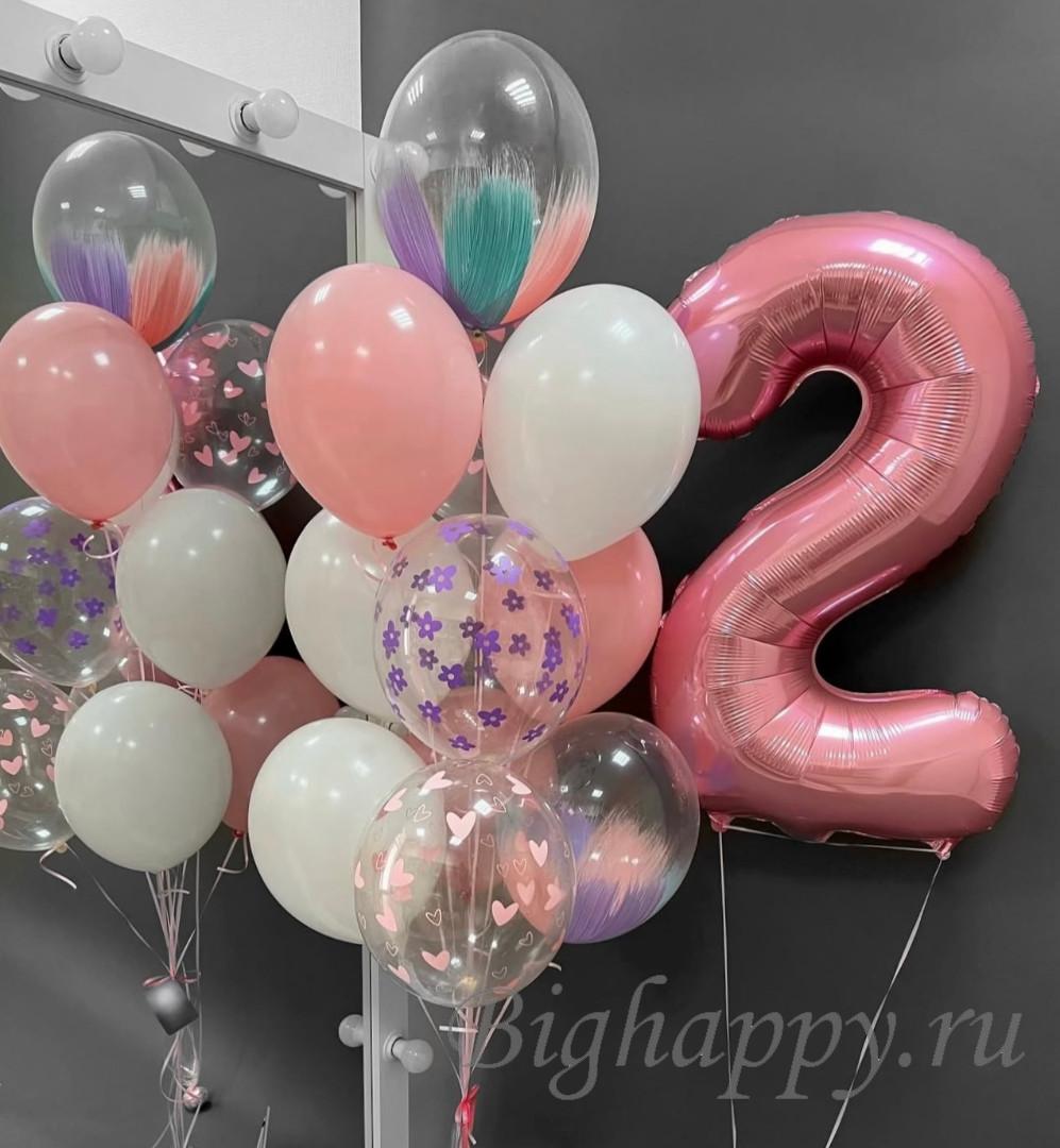 Подарите атмосферу праздника с изысканной композицией в нежных розовых и белых тонах, дополненной шарами – браш и прозрачными с сердечками и цветами. Большая цифра станет ярким акцентом торжества и привлечёт внимание гостей. Такой набор наполнит пространство лёгкостью, уютом и счастливыми эмоциями.