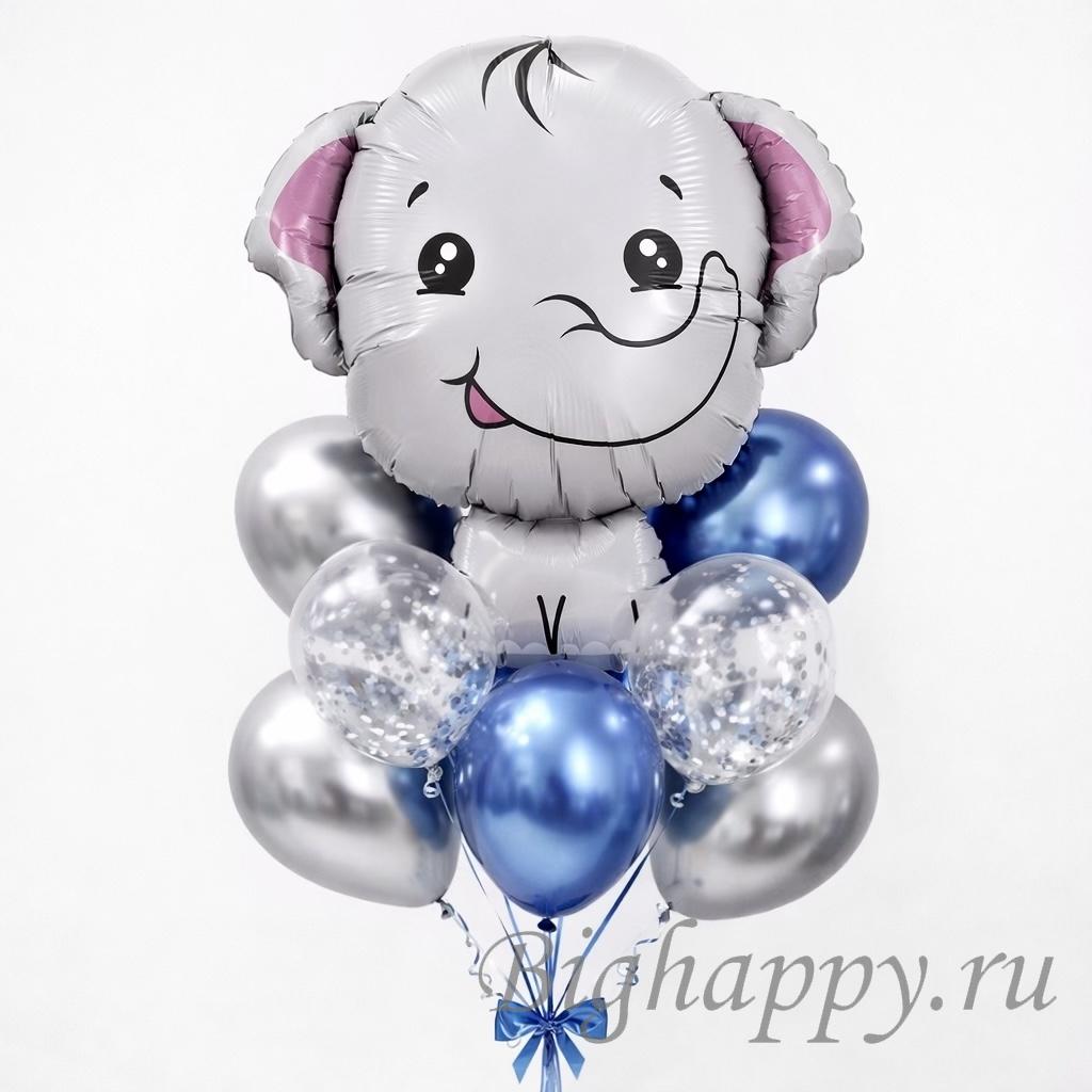 Композиция со слоненком хорошо смотрится в интерьере, на фотосессиях и в качестве подарка — она аккуратная, стильная и легко вписывается в современные пространства. Благодаря сочетанию фактур и оттенков связка выглядит празднично, но при этом остаётся сдержанной и эстетичной.