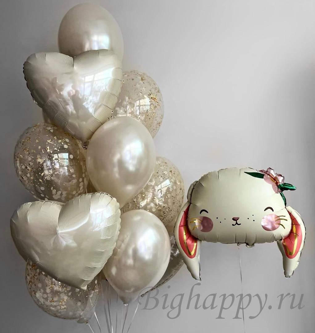 Создайте сказочную атмосферу праздника! В центре внимания — милый фольгированный Зайка с цветочком, а рядом — воздушный фонтан из перламутровых латексных шаров, фольгированных сердец и прозрачных элементов с белым и золотым конфетти. Идеальное украшение для дня рождения или вечеринки, которое подарит радость и волшебство каждому гостю!
