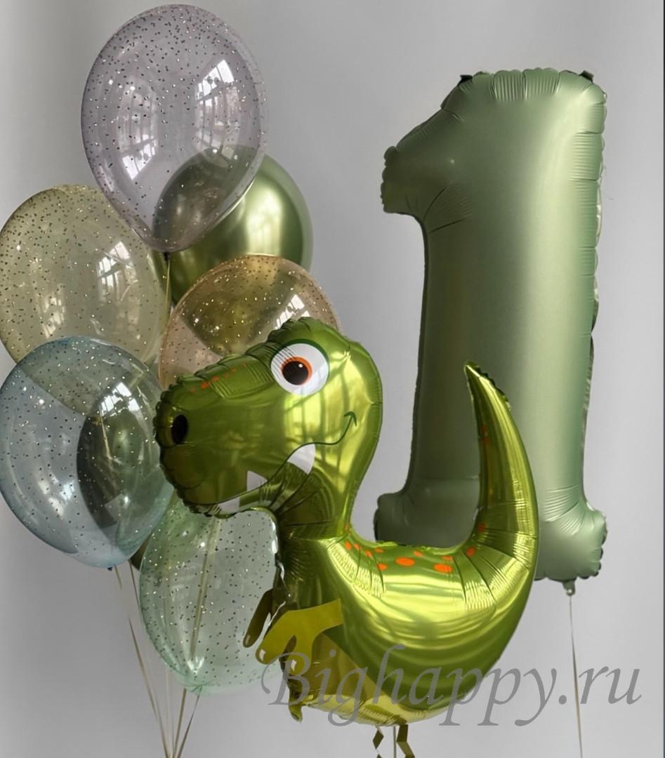Яркий набор с гелием для эффектного детского праздника. Забавный зелёный динозавр сразу притягивает внимание и вызывает восторг у малышей, а большая цифра делает композицию идеальной для первого дня рождения. Шары хром и прозрачные с конфетти добавляют объёма и праздничного блеска. Отличный выбор для фотозоны, сюрприза и создания по-настоящему волшебной атмосферы.