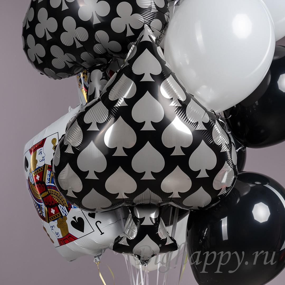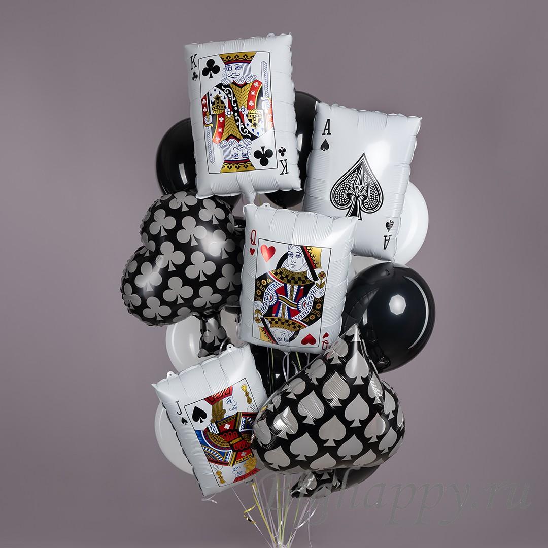 Для тех, кто любит стильные вечеринки с ноткой азарта. Игральные карты, масти и классическая чёрно-белая палитра собираются в композицию, которая сразу переносит гостей в атмосферу Las Vegas, покерных турниров и ночей, наполненных драйвом и эмоциями. Такой набор работает не просто как декор — он задаёт тон всему событию.