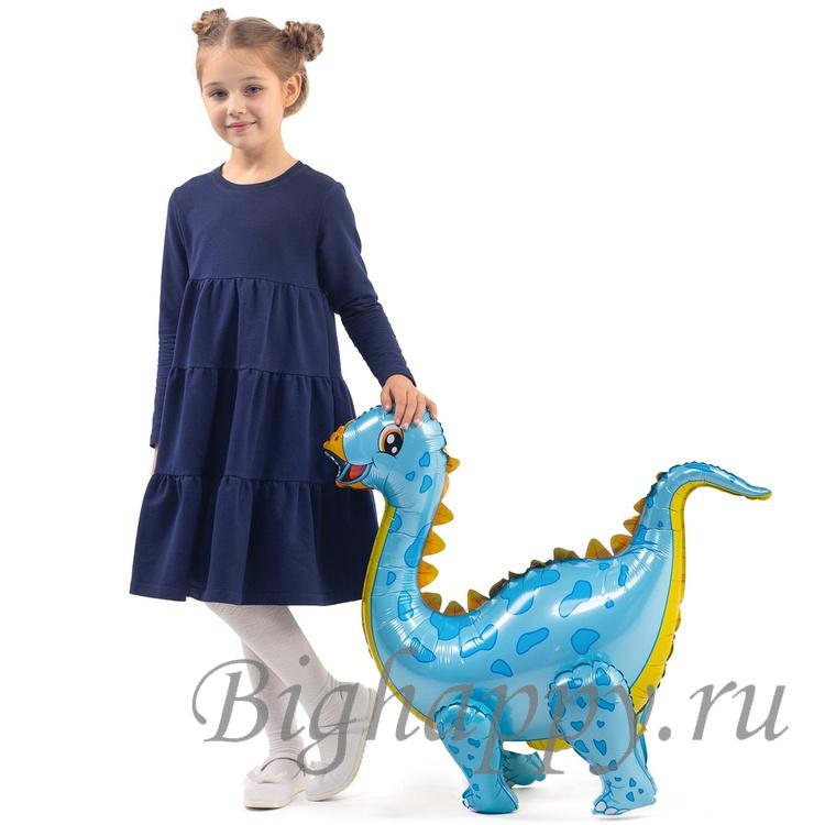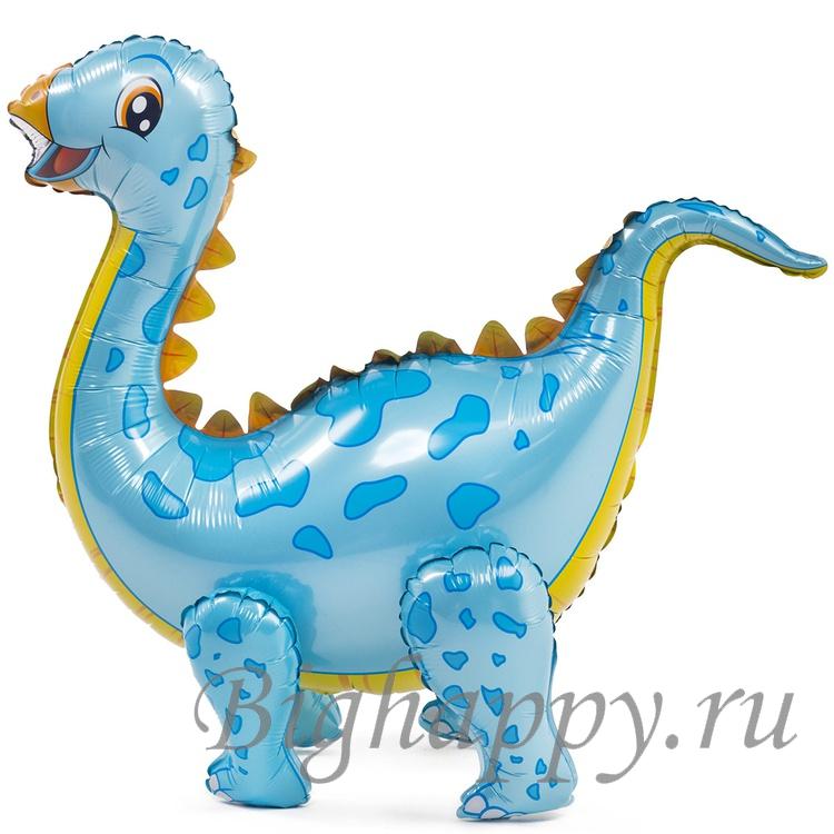 Нежный голубой оттенок в сочетании с жёлтыми и синими акцентами делает шар особенно фотогеничным. Отлично вписывается в детские праздники, особенно в тематику динозавров, приключений или «парка юрского периода» в мягкой, мультяшной интерпретации.