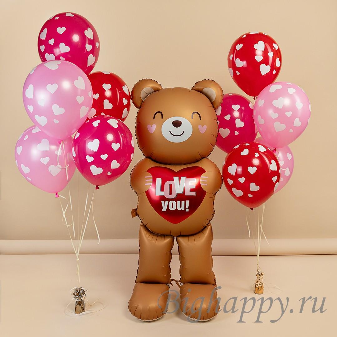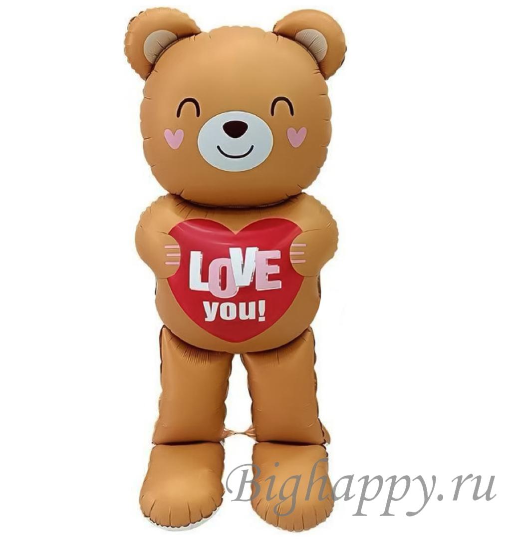 Гигантский фольгированный шар размером целых 155 см, почти в человеческий рост. Гарантирует WOW-эффект! Улыбчивый медведь держит в лапках яркое красное сердце с надписью LOVE you! Выглядит как большая надувная игрушка, с которой хочется обниматься и фотографироваться.