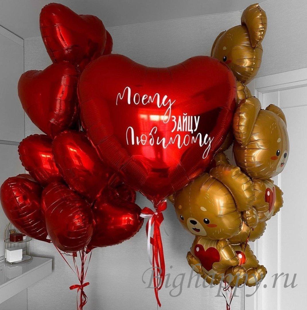 Создайте по-настоящему трогательный сюрприз, наполненный романтикой и теплом. Большое красное сердце с индивидуальной надписью, эффектный фонтан из сердец и букет милых медвежат с сердечками объединяются в одну выразительную композицию. Такой подарок поможет красиво рассказать о чувствах, удивить близкого человека и подчеркнуть значимость важного события, наполнив праздник яркими эмоциями, радостью и атмосферой любви