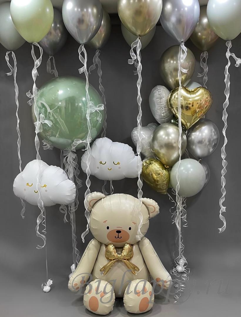 Создайте атмосферу уюта и волшебства с этим стильным набором. Мягкие пастельные оттенки, милые облачка и очаровательный мишка превращают пространство в сказочную фотозону. Идеально подойдёт для выписки или дня рождения. Шары гармонично сочетаются между собой и мгновенно украсят интерьер, добавив лёгкости, тепла и праздничного настроения.