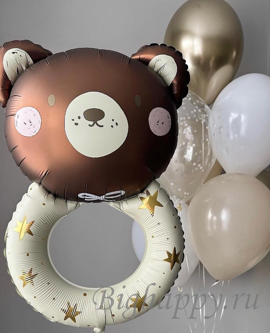 Воздушный набор на выписку из роддома «Мишка-погремушка»