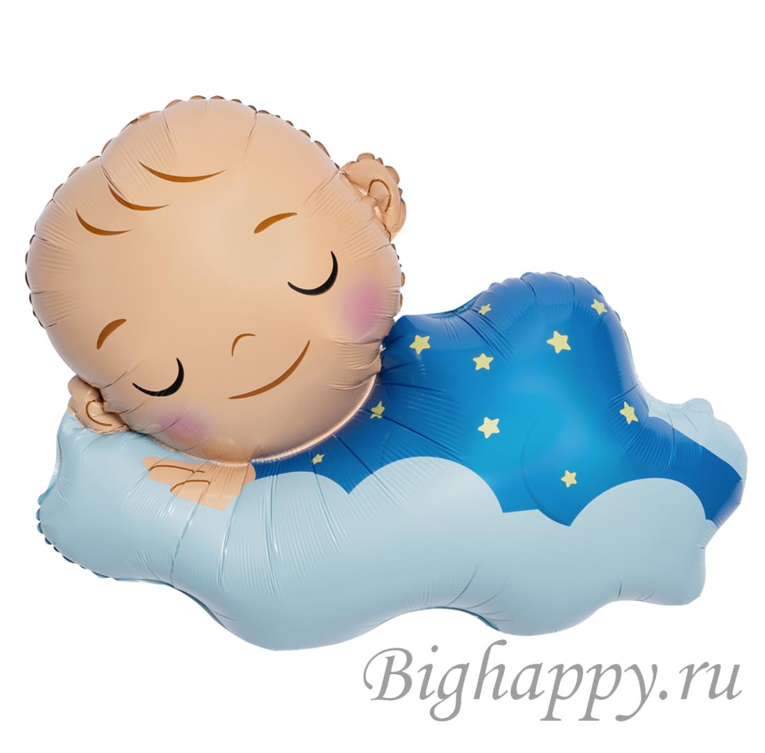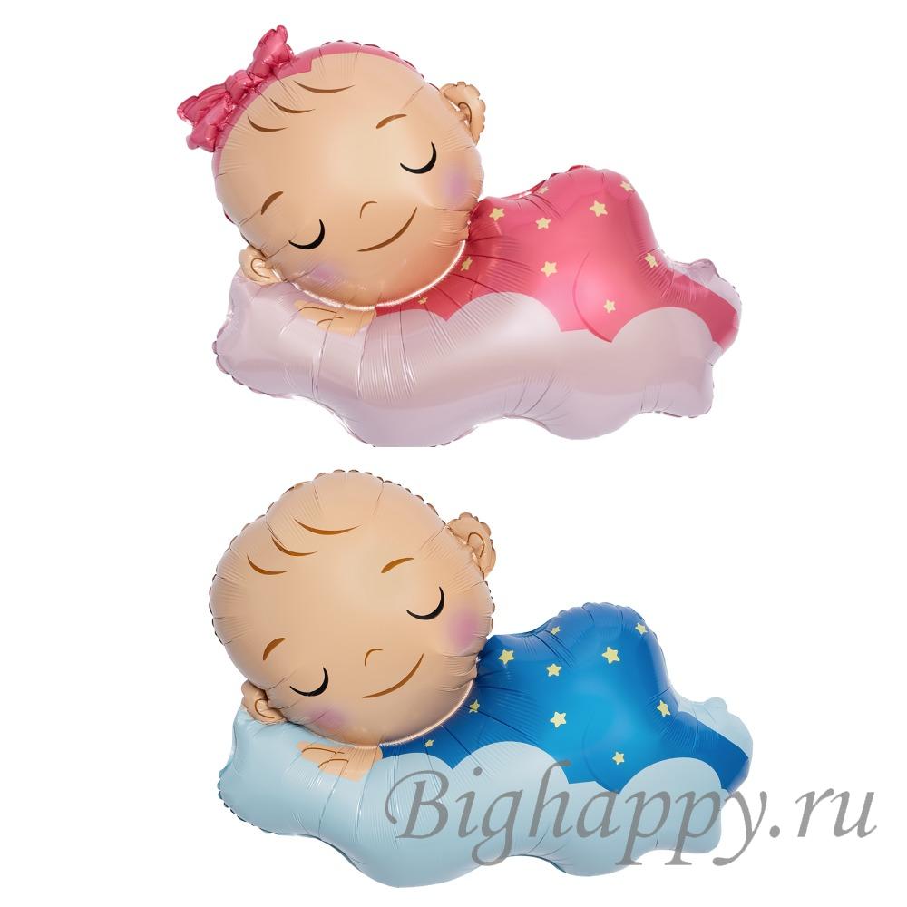 Трогательный акцент для праздников, связанных с появлением маленького чуда. Нежный дизайн с ребёнком, лежащим на мягком облаке, создаёт атмосферу тепла, заботы и светлой радости. Такой шар выглядит очень воздушно и сразу привлекает внимание своей добротой и мягкими оттенками.