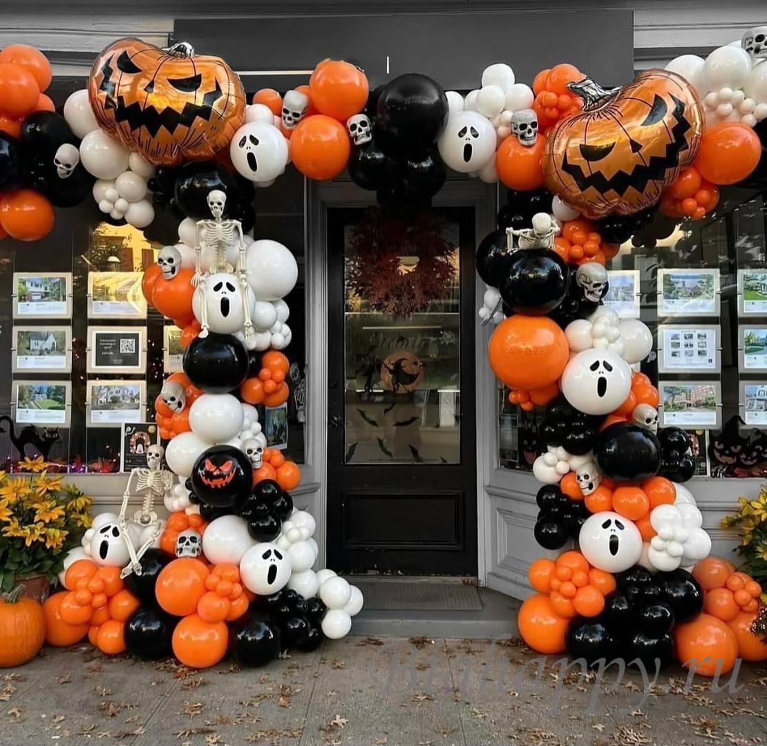 Погрузитесь в атмосферу настоящего Хэллоуина с эффектным оформлением, которое превращает любое пространство в дом страха! Смелое сочетание оранжевого, чёрного и белого оттенков, дополненное тыквами, черепами и скелетами, создаёт жутко-красивый антураж. Идеально для витрин, вечеринок и фотозон, где праздник чувствуется с первого взгляда.