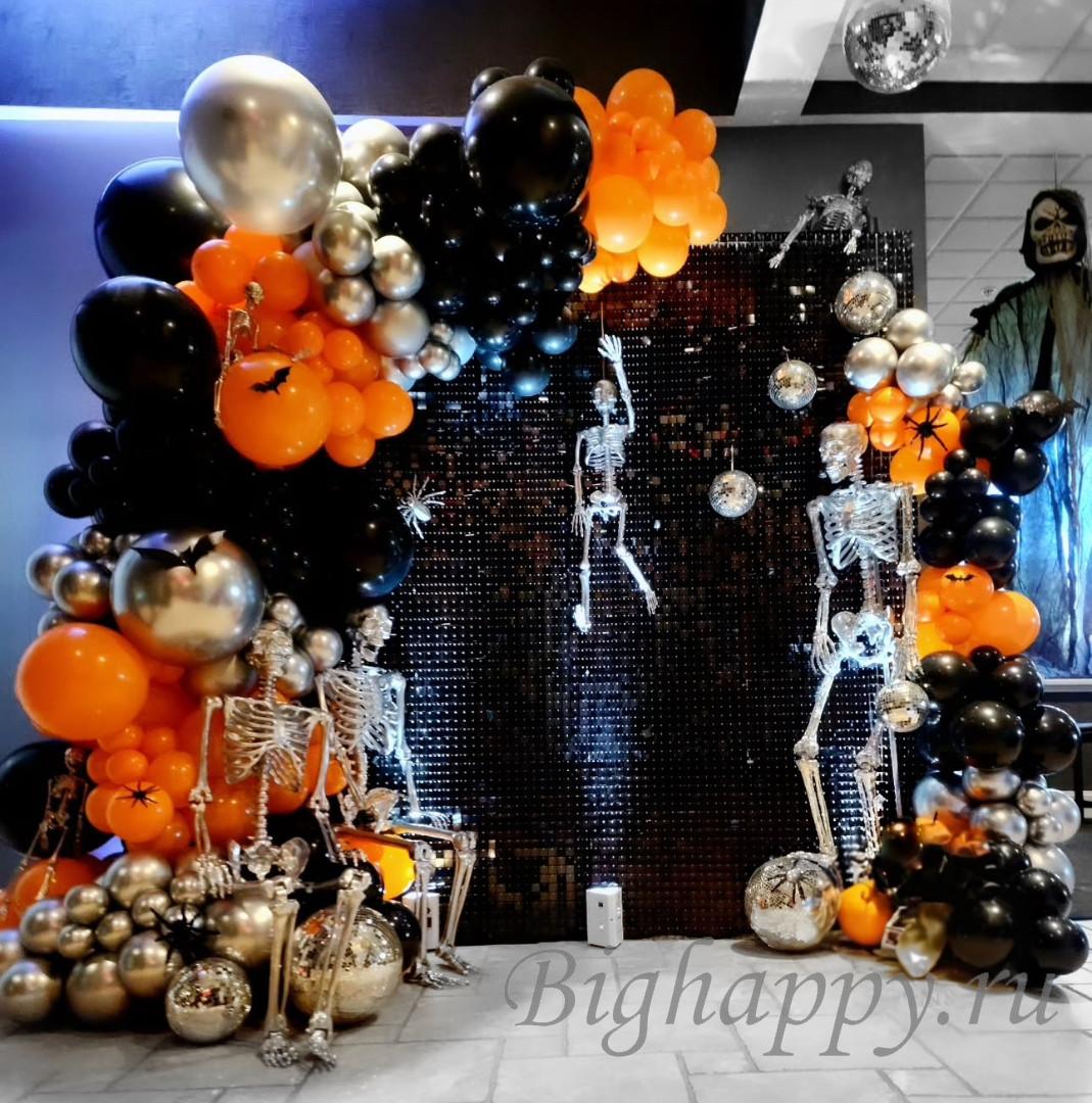 Погрузите пространство в атмосферу таинственного праздника! Гирлянда из разнокалиберных шаров в чёрном, оранжевом и золотом цветах создаёт эффектный фон для фото и вечеринок. Элементы декора добавляют мистики и яркости, превращая любое помещение в стильное и запоминающееся место, где каждая деталь подчёркивает дух Хэллоуина.