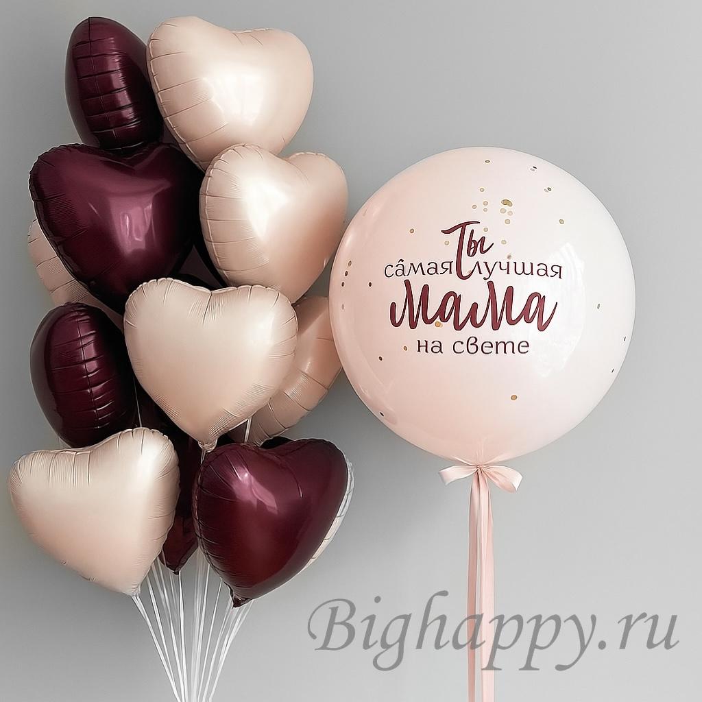 Очаровательная связка воздушных сердец и большой шар с надписью «Ты самая лучшая мама» — это нежный способ сказать о любви без слов.