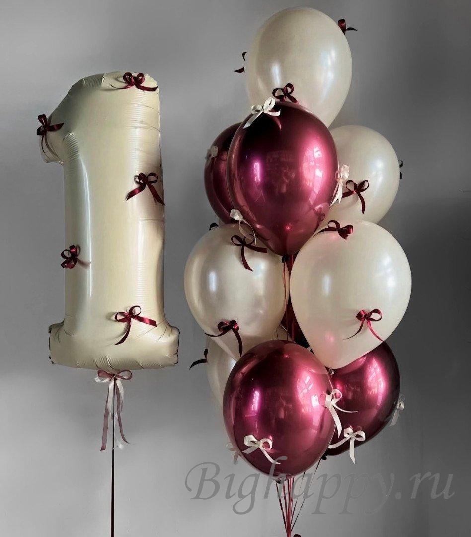 Нежный и стильный набор для первого важного события в жизни малыша. Композиция с фольгированной цифрой и латексными шарами в оттенках айвори и глубокого бордо, дополненная изящными декоративными бантиками, создаёт атмосферу тепла и торжества. Идеально подойдёт для первого дня рождения, уютного семейного праздника или памятной фотосессии. Такой декор гармонично украшает пространство, привлекает внимание и помогает сохранить трогательные моменты в красивых кадрах.