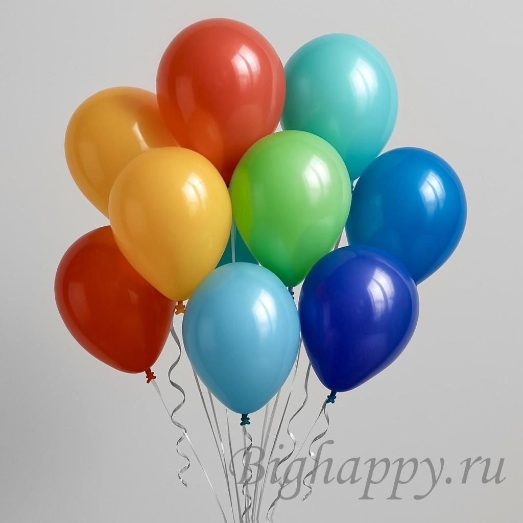 Латексные воздушные шары 30 см., с обработкой длительного полета Hi-float. Наполнение: гелий. В ассортименте практически все возможные оттенки шаров (красный, оранжевый, желтый, зеленый, голубой, синий, фиолетовый и т.д.)