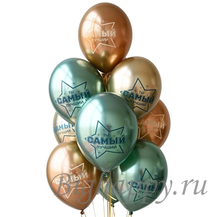 Хромированные латексные шары с надписью «Ты самый лучший» — эффектный вариант для поздравления и комплимента. Металлизированная поверхность даёт красивый зеркальный блеск, а сочетание оттенков (изумрудный, золотой, бронзовый) выглядит дорого и стильно. Подходят для подарка мужчине, благодарности или любого случая, где хочется подчеркнуть значимость человека без вычурности.