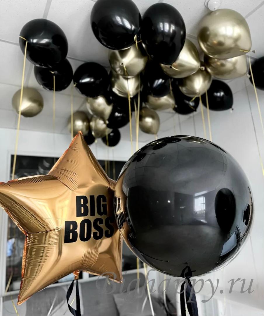 Эффектное оформление в чёрно-золотой гамме для яркого и статусного праздника. Большая золотая звезда с индивидуальной надписью, выразительный чёрный дабл стафф и шары под потолок создадут атмосферу уверенности, роскоши и драйва. Такой набор подчеркнёт характер события, усилит впечатления и сделает праздник по-настоящему запоминающимся