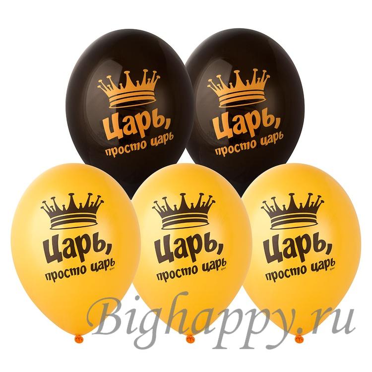 Стильные латексные шары в эффектном сочетании чёрного и золотого цветов. На каждом шаре – корона и дерзкая надпись «Царь, просто царь», которая мгновенно задаёт праздничное настроение.