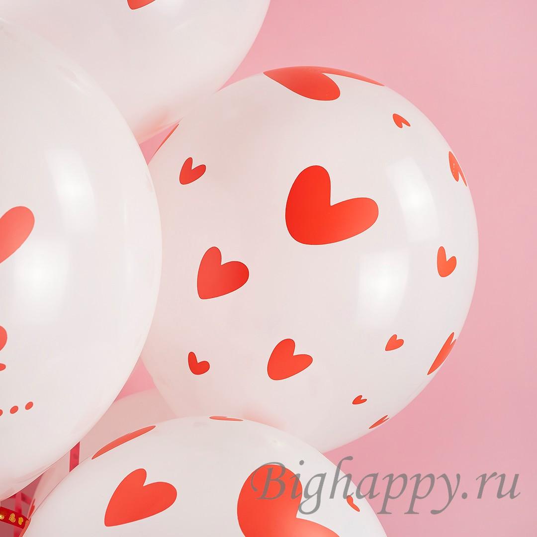 Белые латексные с красным рисунком “сердечки” и надписями, наполняются гелием. Можно подарить любимой девушке, подруге или маме, как на День Рождения, так и на День Всех Влюбленных или 8 Марта. Поможем собрать небольшой букет из шаров с разными надписями и получится очень оригинально и мило.