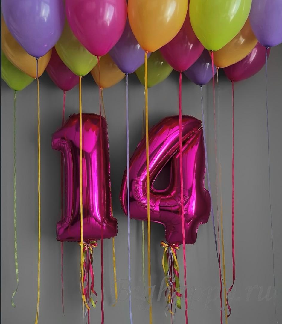 Создайте атмосферу веселья и позитива с яркой гелиевой композицией в сочных оттенках! Праздничные цифры насыщенного малинового цвета эффектно выделяются на фоне разноцветных латексных шаров с длинными лентами. Такой набор станет главным украшением торжества и подчеркнёт важный возраст именинника, добавив празднику стиль и энергию.