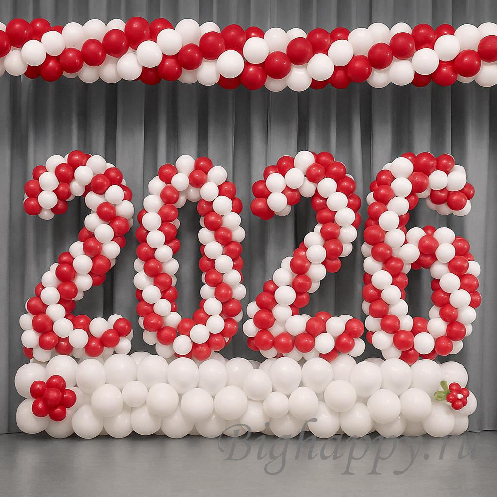 Композицию из латексных шаров в виде цифры на стойке можно использовать в качестве украшения сцены на Выпускной в школе или другом учебном заведении. Также цифры из воздушных шаров можно установить в помещении для празднования Нового года.